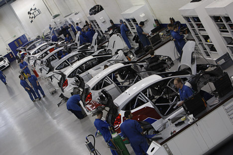 M-Sport's værksted i Dovenby Hall. (Foto: Ford Abu Dhabi World Rally Team)