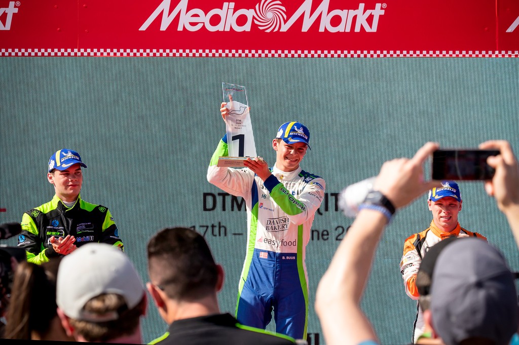 – Det var en fantastisk weekend. Enorm forløsning endelig at have den første sejr på plads. Den første sejr blandt alle os, som sidste år kæmpede om rookiemesterskabet. Det er virkelig fedt. Samtidig er jeg glad for, at vi endelig fik styr på setuppet og farten i kvalifikationen, som har været vores største udfordring indtil videre i denne sæson, lyder det fra Bastian Buus.