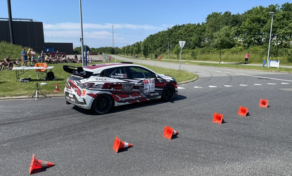 Lokale Carsten Jensen fra Tvis i en Renault Clio, måtte tage til takke med at være 3. hurtigste bil, da der sidste år blev afviklet rally på vejene i Vinderups industrikvarter.