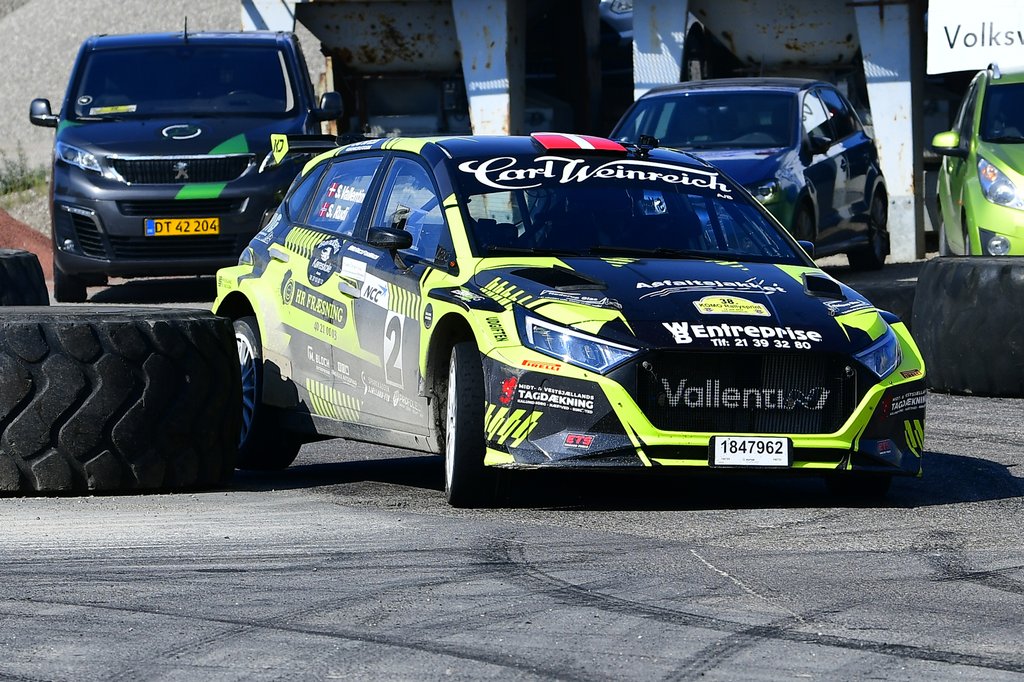 efter en dramatisk sortie i European Rally Trophy-turneringen Med en dramatisk rulletur i det tjekkiske ERT Agrotech Rally i juni en stærkt molesteret Hyundai i120 Rally2 forsvandt Vallentin Rallysports chance for et godt resultat i årets European Rally Trophy-turnering.  Der bliver kørt tæt i lørdagens razzmatazz. Simon Vallentin kender prisen for at køre for tæt på grænsen til det mulige, men det bliver tæt på. (Foto: Morten Dam)