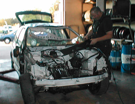 Som et tillægsproblem til til skaderne på Rune's bil, så stod motoren også af i forbindelse med uheldet, den fik 'indåndet' for meget sand og grus! Så her er der indkøbt en helt ny motor, som monteres så også han kan komme til start på Padborg Park.