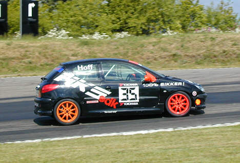 - efter buler på Jyllands-Ringen Efter lidt ekstraarbejde på bilen siden sidste løb, melder Rene Hoff og bilejer Lars Vendelbo alt vel til næste Yokohama Cup-løb på Padborg Park den kommende weekend. Ved forrige løb, Grand Prix Danmark på Jyllands-Ringen, havde Rene Hoff atter god fart i den sorte HKS-sponserede Peugeot 206 GTI. Det blev således til en sjetteplads i lørdagens løb (hans hidtil bedste resultat), men desværre også til dyre buler i starten af søndagens løb. Specielt førersiden gik det hårdt ud over, og da bilen også havde fået lidt tryk der i det foregående løb, var den derfor sendt til opretteren i mandags, så formen atter svarer til andre 206'ere.
