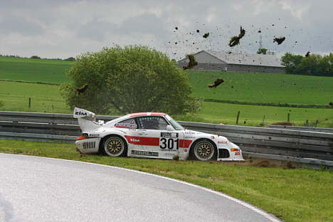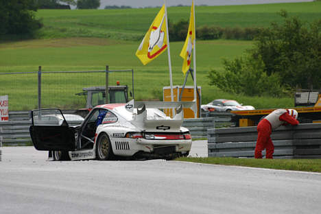 Porsche køreren Lars Schönemann var så uheldig at komme uden for banen i depotsvinge under lørdagens kørsler, noget der satte sit præg på hans 993 GT2 racer.