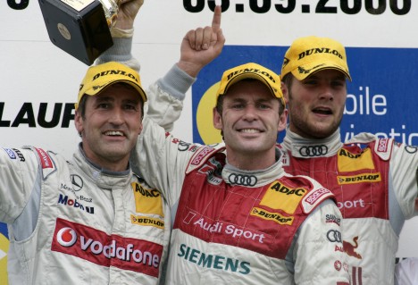 Det ville have været ekstremt bittert, hvis Tom Kristensen havde mistet sejren på de sidste omgange. Efter den gode start valgte han nemlig åbenlyst at køre taktisk og nyde godt af, at der var så mange Audi’er til at kontrollere Green og Schneider. På den måde sparede han på dækkene, så han kunne følge konkurrenternes pitstop-strategier og tage sine modtræk.  Tom Kristensen førte fra start til mål i DTM-afdelingen på Zandvoort og kunne fejre sæsonens tredje sejr med Bernd Schneider (tv.) og Martin Tomczyk som tilskuere (Foto: Audi Motorsport)