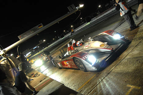 ”Vores mekanikere har knoklet non-stop hele natten igennem for at få en bil ud af de stumper, vi har med. Hele bilen er bygget op igen omkring en monocoque, der ikke er helt optimal, og vi har nu kun opvarmningen lørdag før løbet til at lave en opsætning, der virker til den krævende bane her i Florida. Selvfølgelig har vi den grundlæggende opsætning klar efter at have testet herovre hele ugen, men vi skal have de enkelte dele til at fungere uden problemer for at have en chance for at vinde løbet,” siger Tom Kristensen.