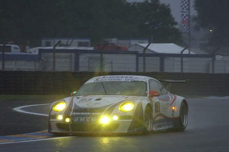 Med de to danske deltagere i LMP klasserne, Tom Kristensen og Juan Barazi, ude af løbet var det op til GT kørerne at holde Dannebrog højt.