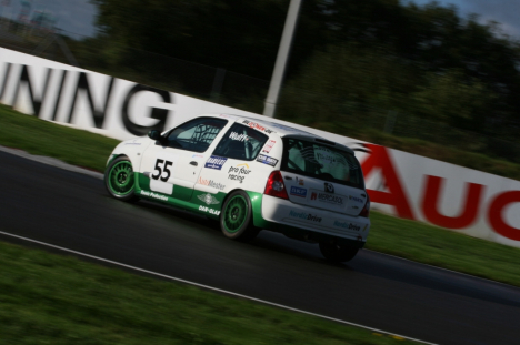 En lille historie om Clio'er på våd bane Den lille vævre Renault Clio Cup racer har alle dage været berømt eller berygtet for en meget livlig bagende, hvis ikke der er varme i bagdækkene. Det kunne tydeligt ses under træningen lørdag formiddag til sidste weekends løb på Padborg Park. Klokken ti om formiddagen har solen ikke fået så meget magt, at der for alvor kommer varme i asfalten, og når banen samtidig er drivvåd, så er der basis for ’skråtlæns’ kørsel.