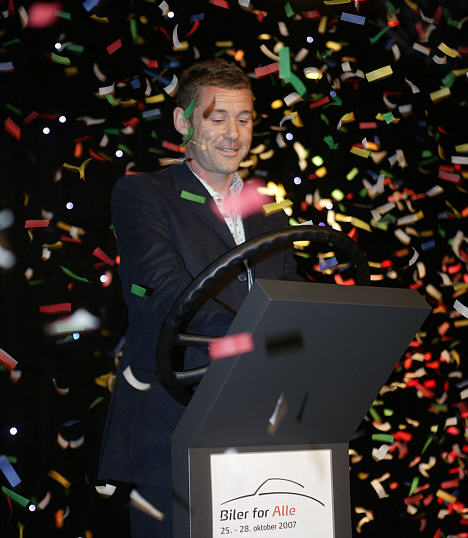 - ved åbningen af Biler for Alle 2007 5, 4, 3, 2, 1 – Jeg erklærer hermed Biler for Alle 2007 for åben. Velkommen til drømmenes pit-garage! Tom Kristensen lyste op og fangede alles opmærksomhed, fra det øjeblik han trådte ind i Messecenter Herning for at stå for åbningen af Skandinaviens største biludstilling – Biler for Alle 2007. Han var her og der og alle vegne, og alle steder var han et velkomment lyspunkt. - Messecenter Herning er igen drømmenes og bilernes holdeplads. Jeg var her til bilmesse som 8-årig, og dengang startede min drengedrøm om biler og racerløb. Nu skal jeg atter lege med biler her i messecentret – denne gang dog i noget større målestok. Husk drømme er fantasiens brændstof, og det skader ikke at tanke godt op, sagde Danmarks største motorsportsstjerne nogensinde, Tom Kristensen, da han torsdag åbnede Biler for Alle 2007 i en regn af confetti.