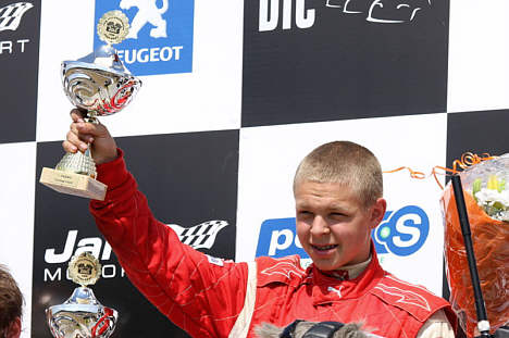 Kevin Magnussens ”papfætter” Dennis Lind udnyttede chancen og kørte efter en flot overhaling sin første sejr hjem.