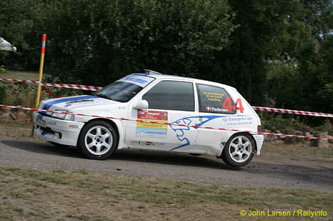 Ved første service blev beslutningen taget, og på efterfølgende prøve bliver et hop taget med høj hastighed, og Peugoet 106 lander meget kraftigt på fronten, det kunne have kostet en køler, så tempoet blev skruet lidt ned. Dog vidste vi at på de lange lige prøver, skulle vi være hurtige, da de stærkere biler ville køre fra os. Det resulterer i lidt for høj hastighed mod en chikane, og en pladesmed er i skrivende stund ved at besigtige skaderne!