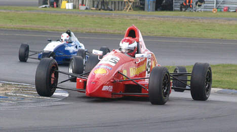 - Internationalt er man i fuld gang med introduktionen af 3. generation (Duratec), fortsætter Nils K. Vestergaard. - Chassis-fabrikkerne udvikler løbende på materiellet, og vi havde således lejlighed til at teste nogle ændringer for Mygale-fabrikken i Frankrig. Til DM-finalen på FDM Jyllands-Ringen fik vi installeret en ny type kølere med henblik på ændring af vægtfordelingen i raceren.