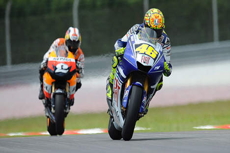 På 3. pladsen i Malaysia kom Rossis landsmand, semi-privatkøreren Andrea Dovizioso på Honda. Hvorimod den detroniserede verdensmester, Ducatis Casey Stoner måtte tage til takke med 6. pladsen.