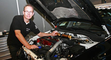 Det er en heftig Mitsubishi-motor, der skal bringe Klaus Hammer op blandt de ti bedste i Danmark. (Foto: Lokalavisen Helsingør)