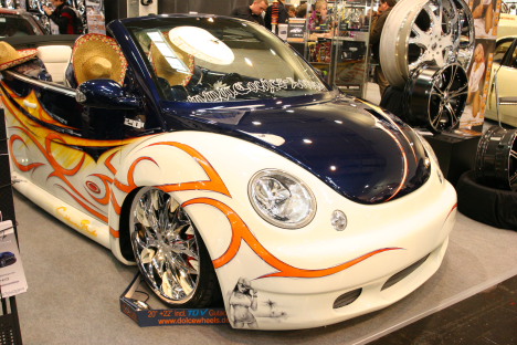 VW New Beetle med 22" fælge og garneret med alskens kræs samt en speciel lakering.