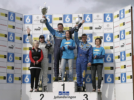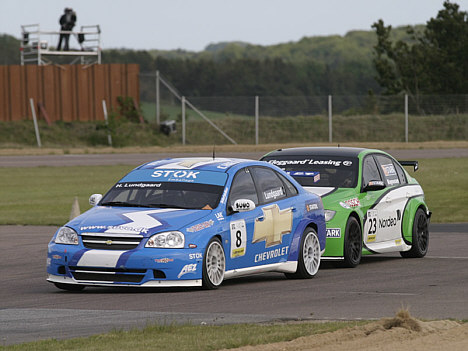 Oppe foran så det lidt lettere ud for Michel Nykjær, som aldrig tillod James Thompson at komme tæt nok på til at forsøge sig med en overhaling. Dermed kunne han med sejren lægge sig i spidsen af DTC-mesterskabet med Henrik Lundgaard lige efter sig. Tilsammen sørgede de to også for, at Chevrolet Motorsport Danmark har lagt sig ganske solidt i spidsen af teammesterskabet. Chevrolet Motorsport Danmark Læs mere om: Henrik LundgaardMichel NykjærChevrolet Motorsport DanmarkJyllandsringen10/05/09 - Jyllandsringen - Danish Touringcar Challenge |