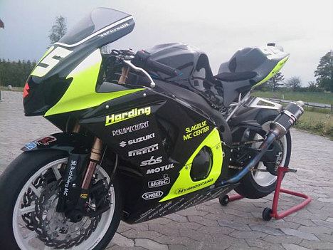 - til weekendens SuperChallenge på Padborg Park Efter Jyllandsringen, hvor vi manglede power og havde ubalance i motorcyklen, har vi lavet ændringer på affjedringen og fået trimmet motoren. Den nye Suzuki GSXR 1000K9 kører med et progressivt linksystem til bagdæmperen, så de progressive fjedre vi kører med fra Hyperpro er blevet udskiftet med lineære. Nu skal vi bare finde ud af hvilke hvor hårde fjedre vi skal bruge Michael Jansberg har fjernet overflødige grater i motoren og Ove fra DOT-E har trimmet cyklen ind, så den bare spiller, og Cyklen har været den sidste tur over Reklamecentret.