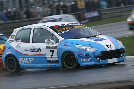 Søndagen oprandt med kulde, regn og blæst, som ikke indbød til udendørs aktiviteter. Vejrmeldingerne blev studeret i detaljer, men prognoserne viste først opklaring og tørvejr efter klokken tolv. Mekanikerne fik justeret undervognen til regnvejr og så var Kim klar til start. Starten forløb pænt uden buler eller skubberi, og det blev hurtigt klart, at bilens opsætning var helt perfekt. Afstanden til de foranliggende blev mindre for hvert sving, men kørsel på grænsen af det mulige er svært – især når banen er kold og våd. På tredje omgang blev den hårfine grænse for dækkenes vedhæftningsevne overskredet i Big Mac og den blå-hvide Peugeot måtte en tur ud over græsset. Da næsen igen pegede den rigtige vej og hjulene var kommet op på det sorte underlag, var feltet forsvundet langt udenfor rækkevidde, så bilen blev kørt i pit. Efter heatet sad en glad Kim Lund og varmede sig i teltet: ”Det var lidt ærgerligt. Bilen gik perfekt og trak som en drøm, men der er næsten ingen margen mellem succes og fiasko under de forhold vi har i dag.”