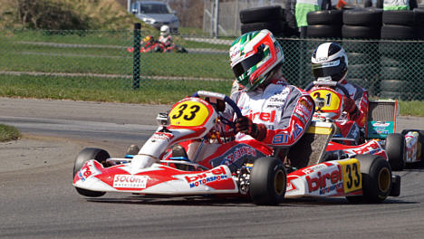- I DJKM deltager 9 forskellige nationaliteter, supplerer far og teamchef Erik Sørensen. - Mange konkurrenter stod derfor klar til at tage fighten op mod Christian, som scorede tredjehurtigste tid under tidtagningen. Forskellen var dog så minimal som 5 hundrededele sekunder op til etteren. Oschersleben er en forholdsvis hurtig bane med en snitfart i KF3 på 94 km/t. Tidsgabet op til pole position (nr. 1) svarer derfor til en halv meter, hvilket også meget godt beskriver jævnbyrdigheden i front.
