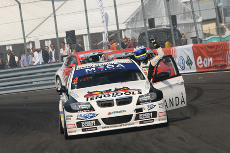 Publikum blev vidne til hæsblæsende racerløb, da STC-feltet blev sluppet løs på asfalten. Magnussen, der ellers startede i første række, blev overhalet af en meget hurtigt startende Tommy Rustad, men fik efter et par omgange lagt den norske Volvo-kører bag sig. Hele løbet så det ud til at Dannebrog skulle præsenteres på podiet, men i sidste sving før det ternede flag eksploderede hjulboltene i Bauhaus-Lacettiens venstre forhjul, og kun en hurtig redning gjorde at bilen ikke endte i autoværnet. Det lykkedes at få bilen over stregen på 7. pladsen, men mon ikke der er bidemærker i rattet på Chevroleten efter den omgang?