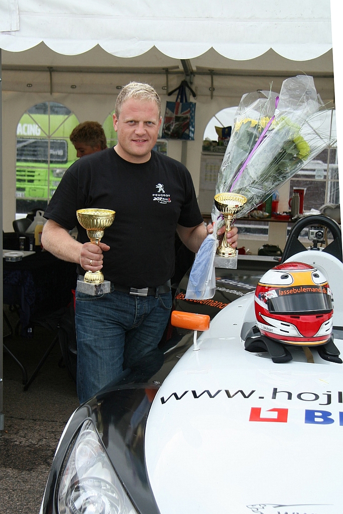 Jeg er så tæt på guldet Det var en meget tilfreds Bulemand, der søndag morgen klokken tre kørte raceren i garage og fik ryddet de sidste ting på plads efter en forrygende racerweekend på Ring Knutstorp i Sverige. Torsdag var det lille team kørt fra Thisted til Thunder Valley lidt syd for Helsingborg for at køre næstsidste afdeling af mesterskabet i Peugeot Spider Cup. Det var også et gensyn med banen, som Lasse havde kørt på for seks-syv år siden i formel-bilen. ”Der var sket nogle ændringer omkring banen, men ellers var det et glædeligt gensyn.