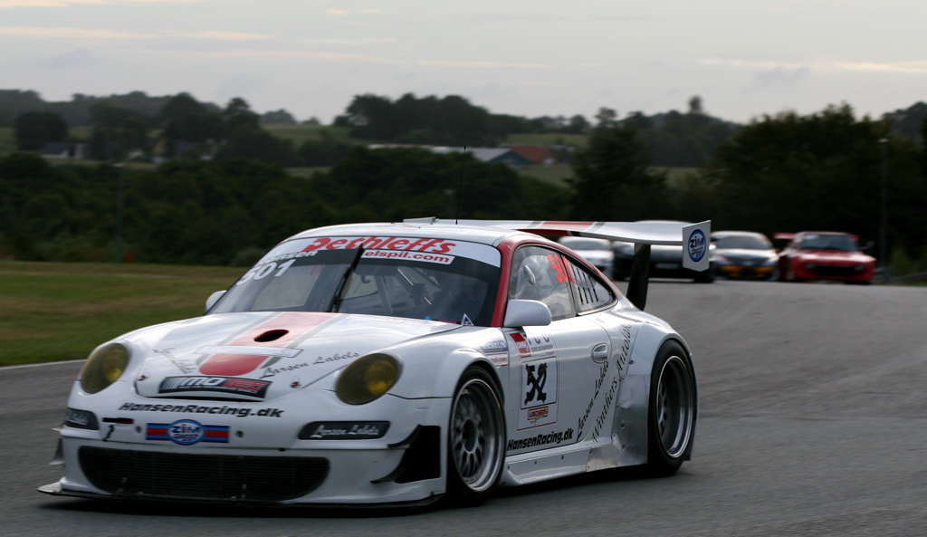 Jørgen Hansen i sin Porsche 997 GT3 RSR vandt foran Christian Siepmann i BMW M3 E92 og med Johannes Graversen på tredjepladsen i sin Fiat X 1/9 Turbo.  Jørgen Hansen vandt første løb (Foto: Motorsporten.dk)