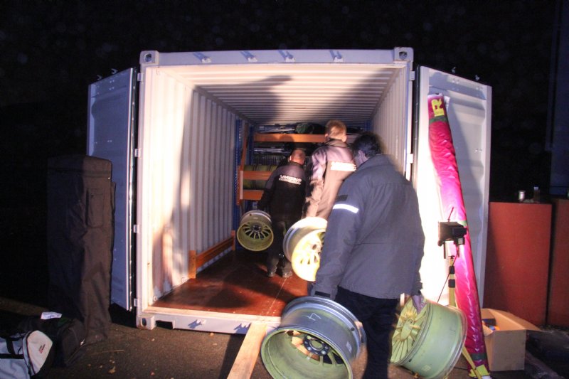 hvor alt blev pakket i container, lukket og låst for nu at blive transporteret til Rotterdam og videre med skib til Dubai.