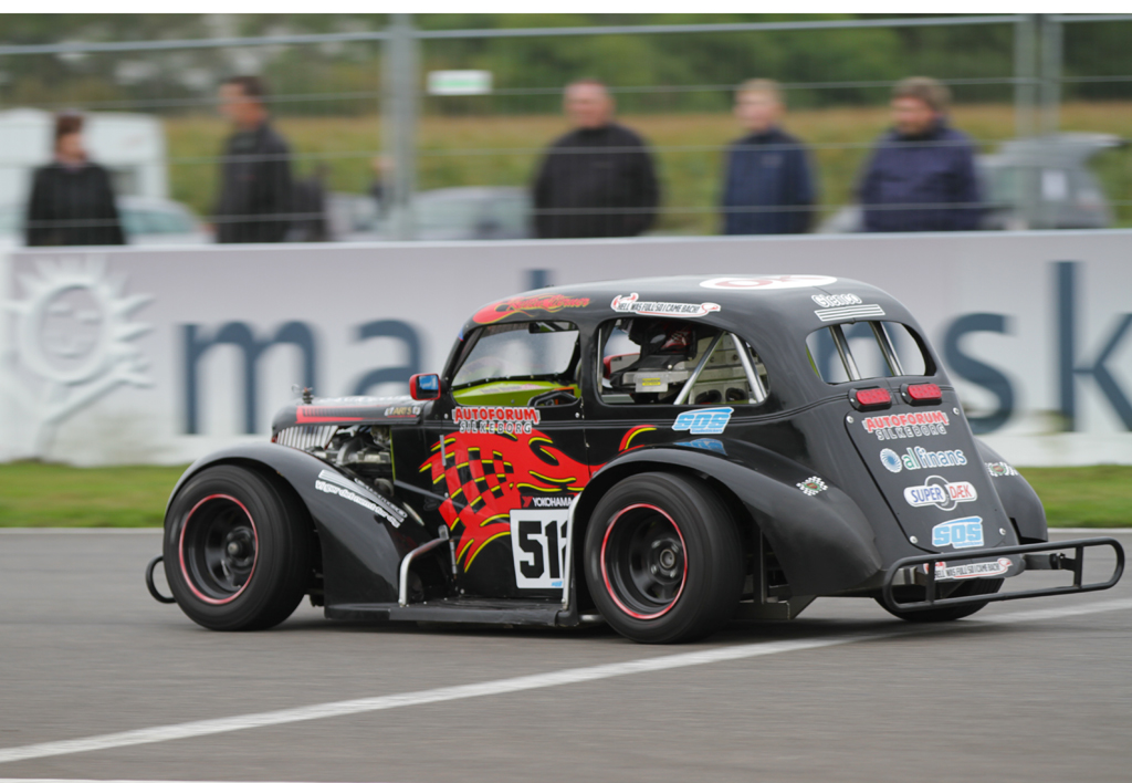 Det var kun bagenden af Kevins Legend Car konkurrenterne fik at se i weekendens andet løb. (Foto: Motorsporten.dk)