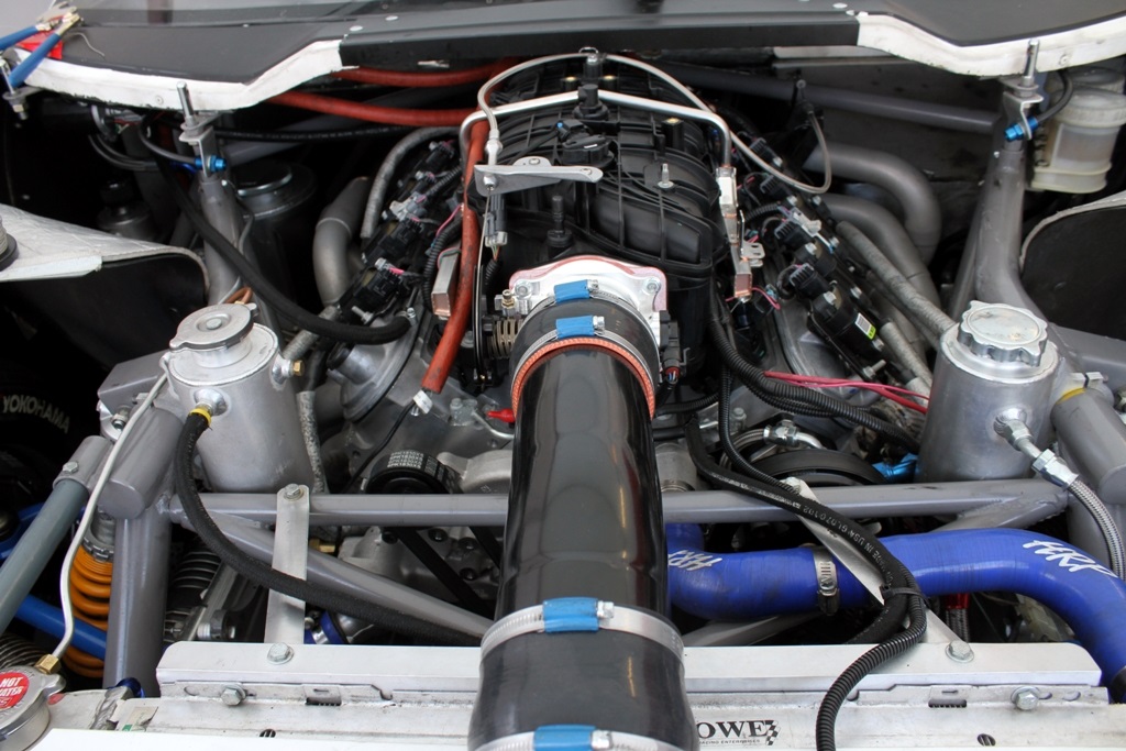 Chevrolet Corvette LS3-motor, V8-cylindret sugemotor, 475 hk, 4-trins manuel gearkasse, gearstang, glasfiberkarrosseri med form som Chevrolet Corvette eller Ford Mustang.