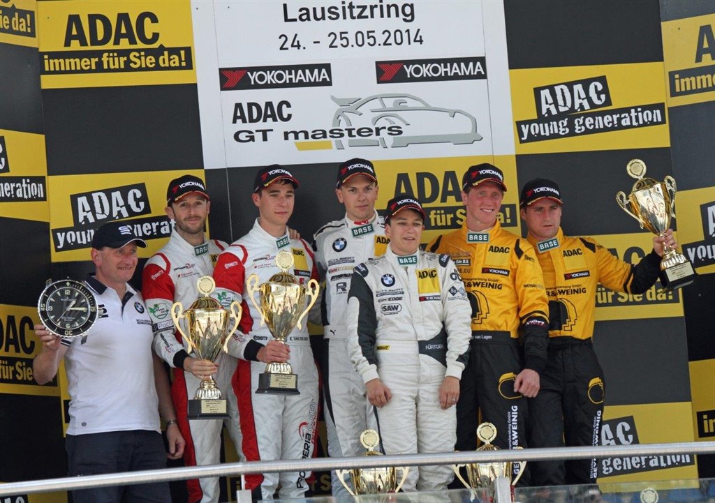 Claudia Hurtgen og Dominik Baumann (Pixum Team Schubert) vandt deres første sæsonsejr i den blot tredje løbsweekend i år. Det skete på Lausitzring i teamets BMW i ADAC GT Masters serien. Hürtgen og Baumann startede fra pole position og førte det meste af løbet frem til målstregen hvor de i deres BMW Z4 vandt suverænt foran Kelvin van Linde og Rene Rast i deres Audi R8. Denne konstellation fik dermed deres femte podieplacering ud af seks mulige i denne sæson. Jaap van Lagen kom sammen med Martin Ragginger ind på tredjepladsen i deres Porsche 911, de kunne dermed forsvare deres føring i mesterskabet.