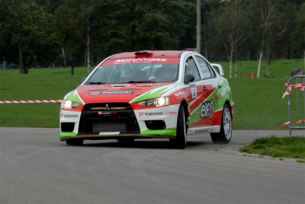 Steen Andersen, hurtig rallykører fra Brøndby, er overlegen vinder af Yokohama Mesterskabet Øst i klassen for de hurtigste biler. Her er han skudt i et skarpt sving med sin Mitsubishi Lancer Evo X (Foto: Morten Dam)
