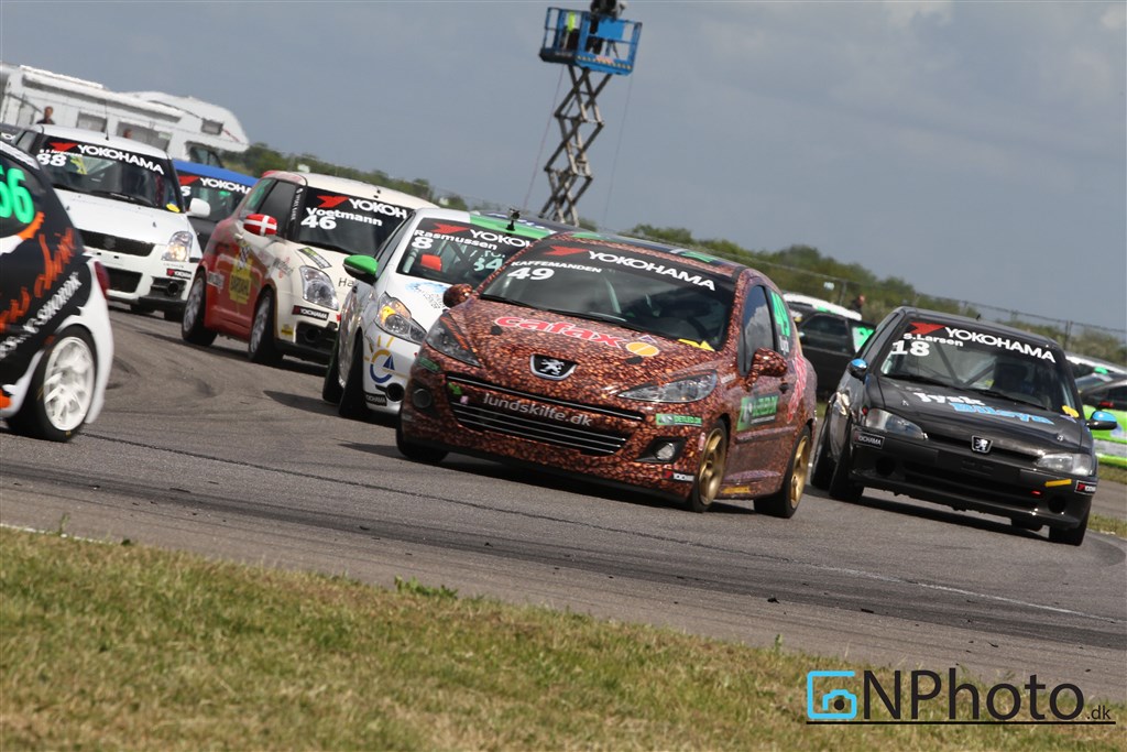 Det gjorde det helt bestemt! Men også med lidt hjælp fra andre kørere. Flere af de forankørende stødte nemlig sammen i de første par sving, og det udnyttede Esbjerg Motor Sport Auto køreren til fulde, og erobrede 2. pladsen halvvejs rundt på første omgang!