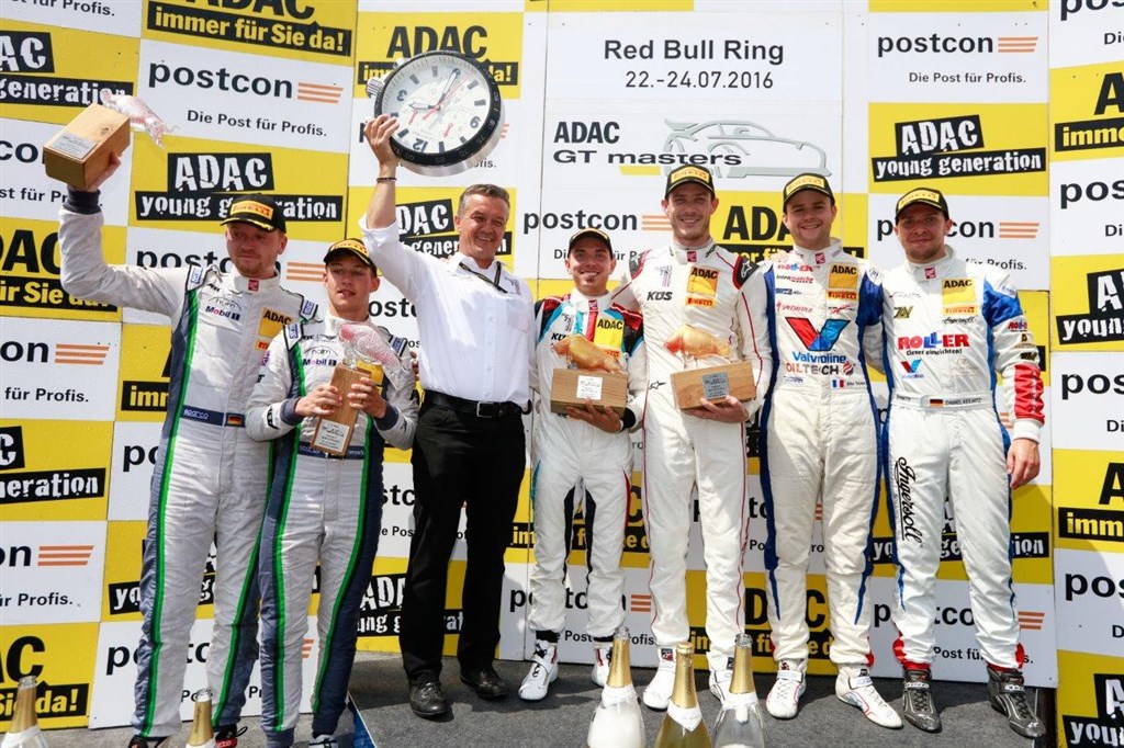 - Nicolai Sylvest tager 7. paldsen David Jahn og Kevin Estre (KÜS TEAM75 Bernhard) kørte på Red Bull Ring deres Porsche 911 til den første sejr i ADAC GT Masters for KÜS TEAM75 Bernhard. Fabian Hamprecht og Christer Jöns (Bentley Team ABT) tog andenpladsen på podiet med deres Bentley Continental. Med tredjepladsen kunne Corvette duoen Jules Gounon og Daniel Keilwitz (Callaway Competition) overtage føringen i mesterskabet ved midten af sæsonen. Ved starten til "Halvlegsløbet" i ADAC GT Masters sæson 2016 - det syvende af 14 løb, forsvarede Hamprecht i Bentley Continental, der startede fra pole position, i første omgang sin føring. Tyskeren havde arvet den bedste startposition fra sine holdkammerater Jordan Pepper og Daniel Abt, der ikke kunne starte på grund af et teknisk problem. Men Hamprecht kunne ikke forsvare føringen længe. Allerede på åbningsomgangen mistede han føringen til David Jahn i Porsche 911, der startede fra tredje position på grund af diskvalifikationen af Jesse Krohn og António Félix da Costa. Jahn førte trygt til kørerskiftet, foran Hamprecht og Corvette køreren Gounon.
