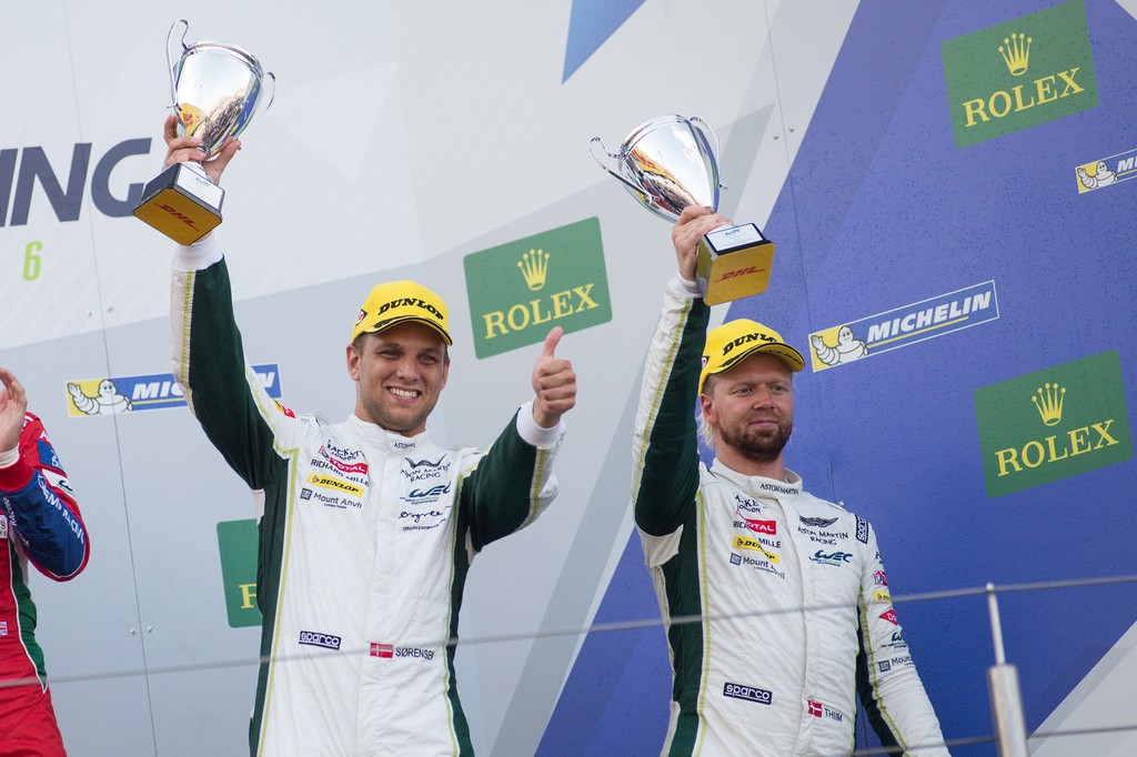 En stærk præstation af Young Driver AMR foran en imponerende menneskemængde på Nürburgring: 58.000 fans oplevede Young Driver AMR's bedste præstation indtil videre i GTE Pro klassen af FIA WEC. Marco Sørensen og Nicki Thiim kørte deres Aston Martin Racing indsatte Young Driver AMR-Aston Martin Vantage #95 frem til en tredje plads og hjemtog Young Driver AMR's første podieplacering i klassen. Den stærke præstation kom efter Sørensen og Thiim allerede havde taget pole position i kvalifikationen.  (Foto: Nick Dungan/Drew Gibson Photography)