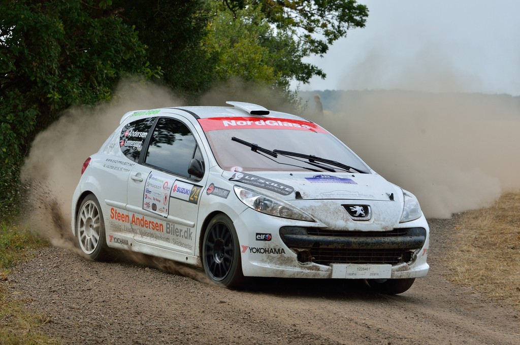 Efter nattens hastighedsprøver lå Thomas Andersen og Ditte Kammersgaard på en tredjeplads i klassen i Sydhavsrally med deres Peugeot 207 RC (Foto: Michael Eisenberg)