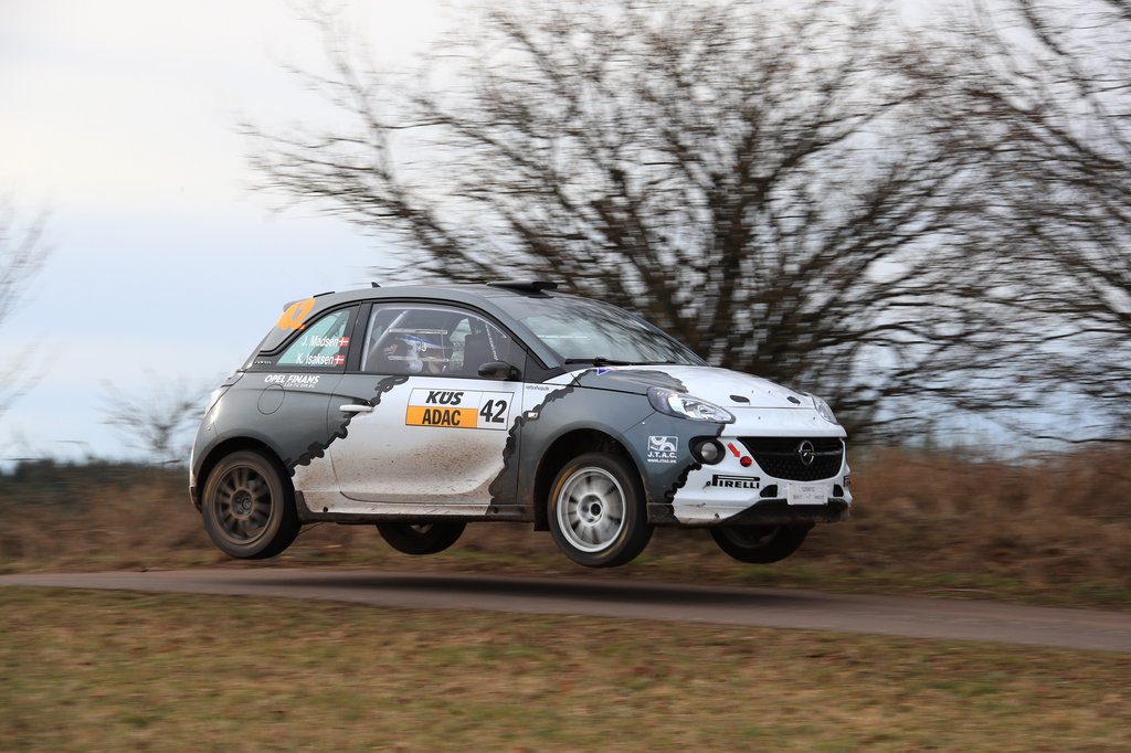 - Tæt på klassesejr Selv uden sin sædvanlige codriver Line Lykke Jensen, der var gudmorramt til barnedåb i Danmark, var Jacob Madsen flyvende i sit første rally i år, Saarland-Pfaltz Rallye tællende til det tyske mesterskab. Her stillede unge Madsen op med erfarne Karsten Isaksen i codriversædet i sin tunede Opel ADAM R2. "Vi havde næsten kørt os op på førstepladsen i klassen, da en konkurrent snurrede rundt lige foran os på næstsidste hastighedsprøve, og vi ramte ham," fortæller Jacob Madsen.