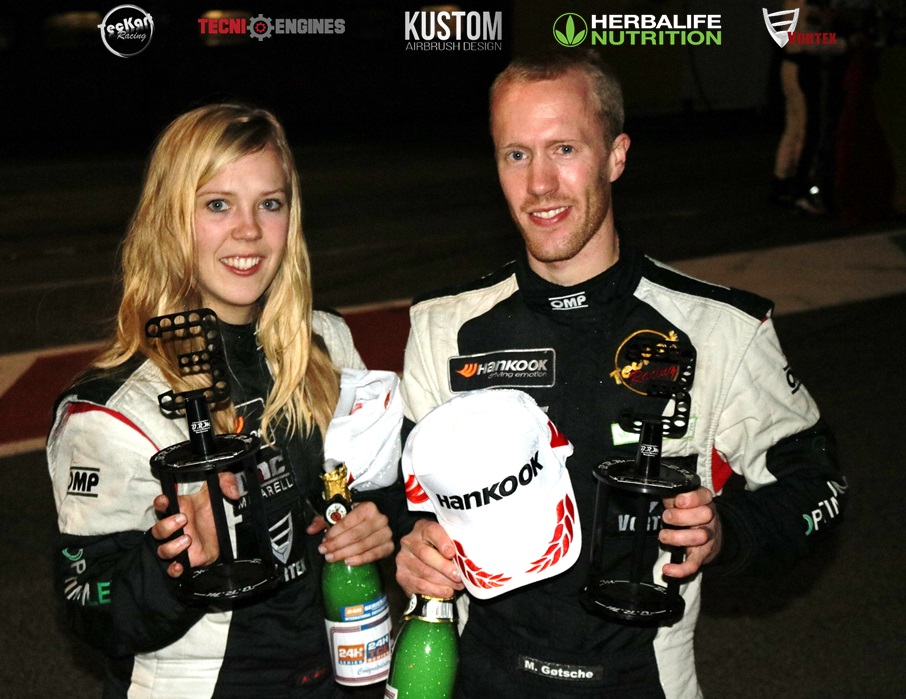 For VORTEX SAS og deres GC10 racer, oplevede man stort set at ligge på alle pladser under løbet. Martin startede selve løbet om fredagen, og allerede i starten måtte han i pit efter at der var brand i motorrummet. Det viste sig at være en olietank fra gearkassen som var faldet ned på udstødningen – så den sag blev hurtigt klaret – men teamet var herefter på sidstepladsen. Martin kæmpede sig så op igennem feltet og Nanna overtog bilen og fortsatte fremad. Omkring 35 minutter før første del af løbet var overstået kom Florian i bilen, han fortsatte den gode kørsel og skulle herefter starte anden del af løbet lørdag kl. 10,00.