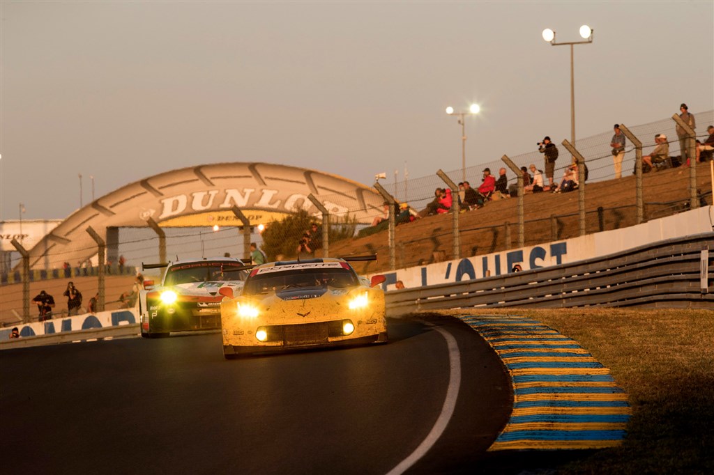 Spændingen var på kogepunktet i de sidste minutter af 24-timers Le Mans, da Jan Magnussens gule Corvette C7.R #63 førte GTE Pro-klassen foran rivalerne fra Aston Martin. Teamkammerat Jordan Taylor styrede kampen, men måtte give op, da en punktering satte bilen ud af spillet. Aldrig har afslutningen på 24-timers Le Mans været så nervepirrende, som det, der udfoldede sig søndag eftermiddag på den berømte franske racerbane. Efter et suverænt pitstop blev Jan Magnussens teamkammerat Jordan Taylor sendt ud i løbets sidste stint, hvor han straks tog føringen foran en af de to Aston Martin-biler, som hele weekenden havde vist sig stærke.