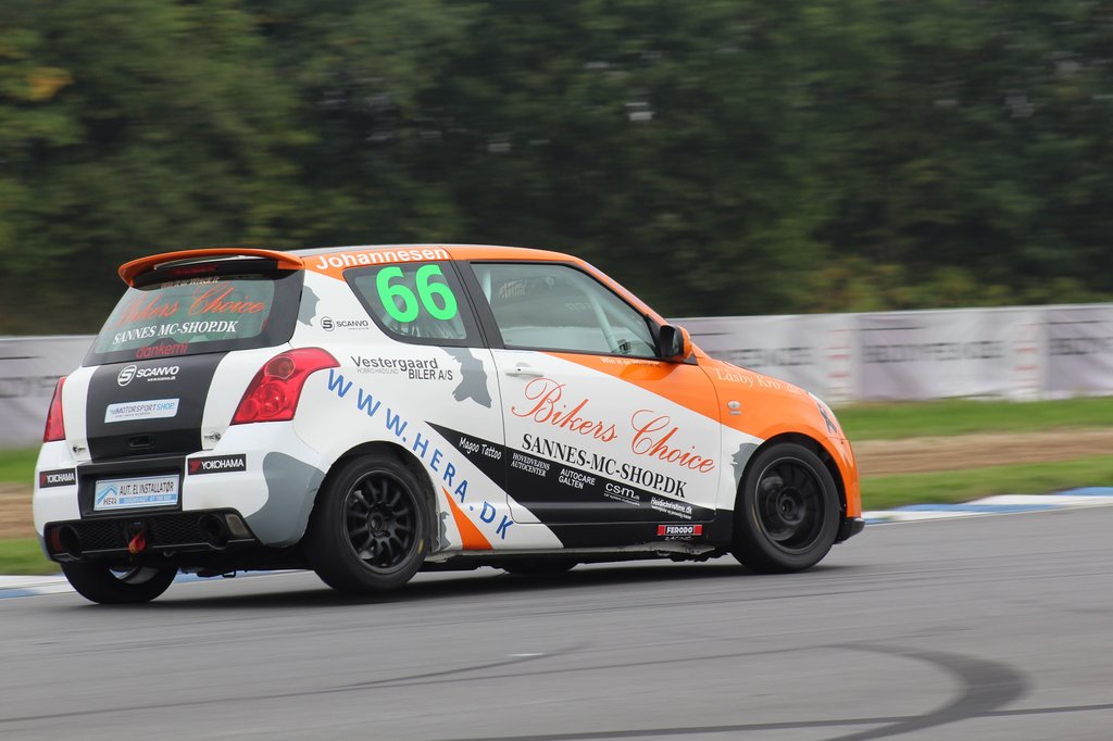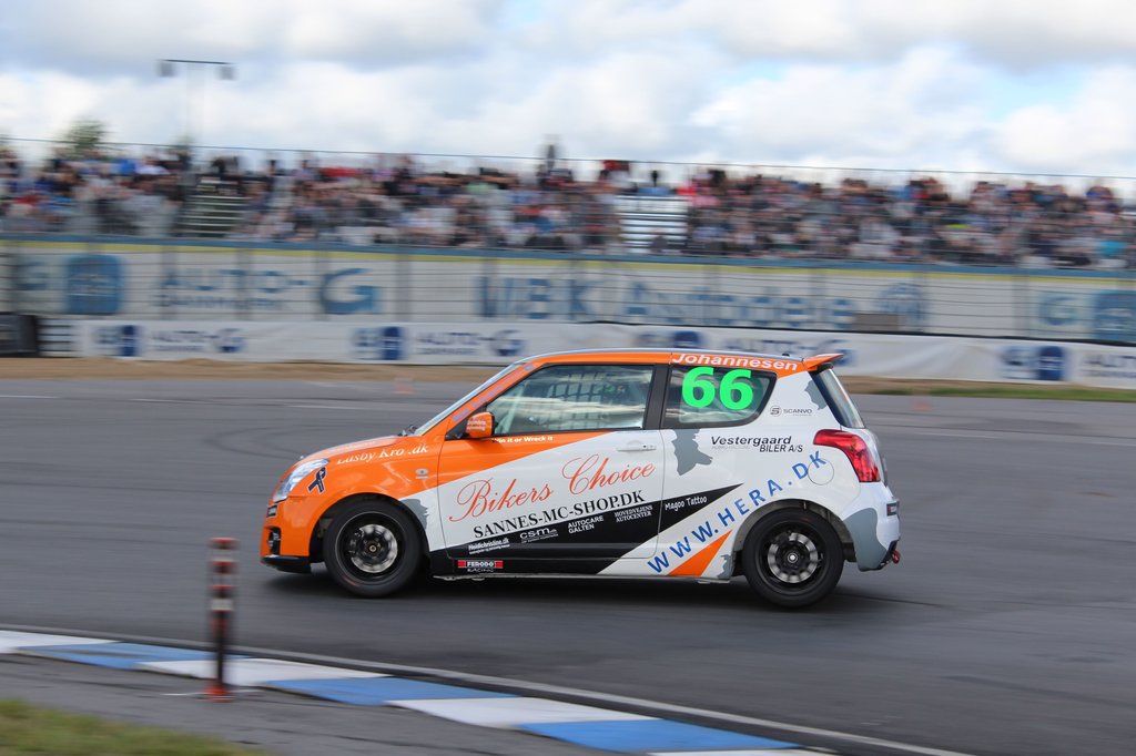 Den hvide og orange Suzuki Swift Sport med nummer 66 i sideruden sluttede på en fin 8. plads, hvilket gav Pole Position til heat 2.