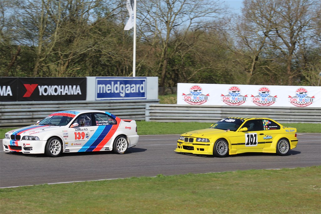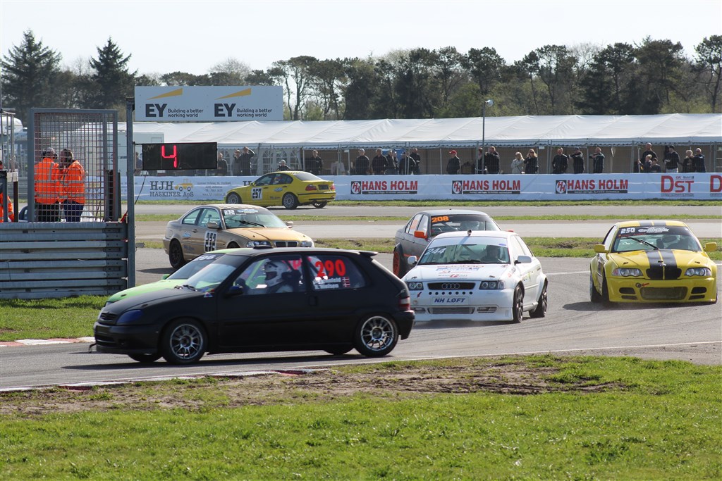 Der var dramatik allerede i første sving, da Keld Graabæk, Christian Schandorff og Erik Hawaleschka Madsen grubbede lidt skærme. Værst gik det ud over Madsen, der desværre ikke fik kørt mere i weekenden grundet defekt styretøj på hans Mini. Super ærgerligt, da han var med til at bryde BMW dominansen i divisionen. Schandorff måtte også parkere bilen i sandkassen, men holdet arbejdede resten af lørdagen og havde bilen køreklar igen til løbene søndag.