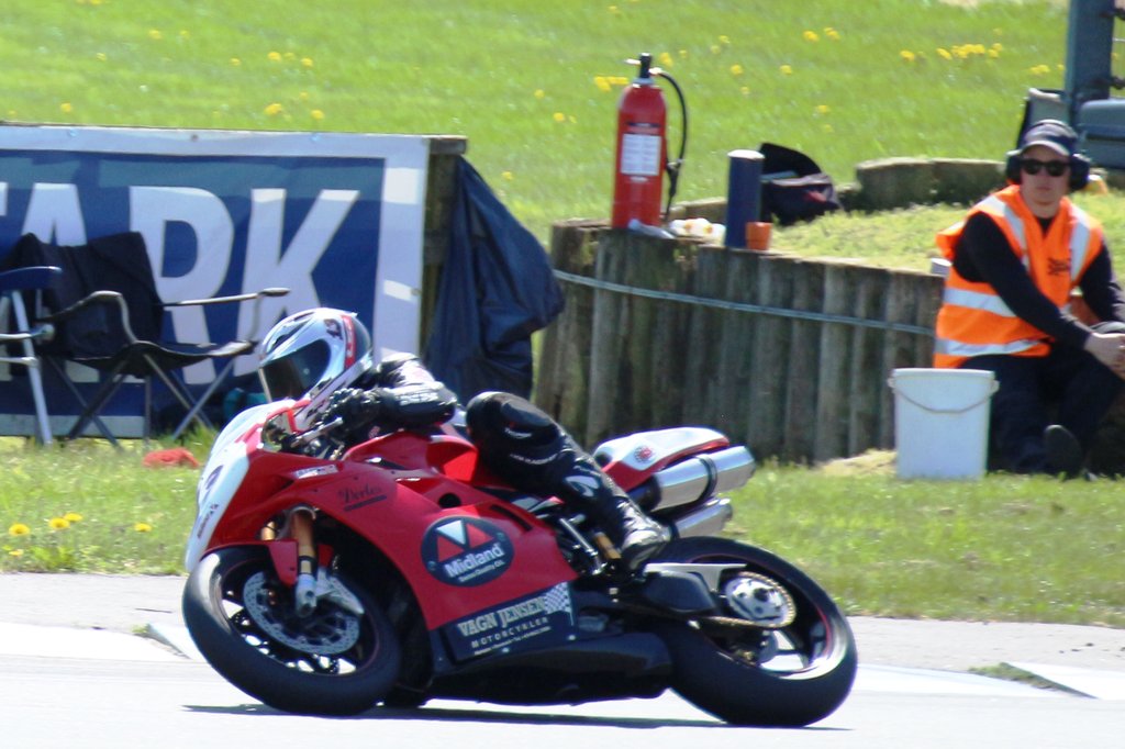 René Prang kan se tilbage på en weekend hvor alt stort set lykkedes. René var spændt på om skulderen holdt efter en lang pause, grundet det alvorlige styrt ved Copenhagen Historic Grand Prix i august 2017, med efterfølgende operation og genoptræning. Solen skinnede, skulderen holdt og René Prang har lagt sig i spidsen for DM i Classic SuperBike, som han har vundet i både 2016 og 2017. I serien kører René Prang for Vagn Jensen Motorcykler som hovedsponsor.
