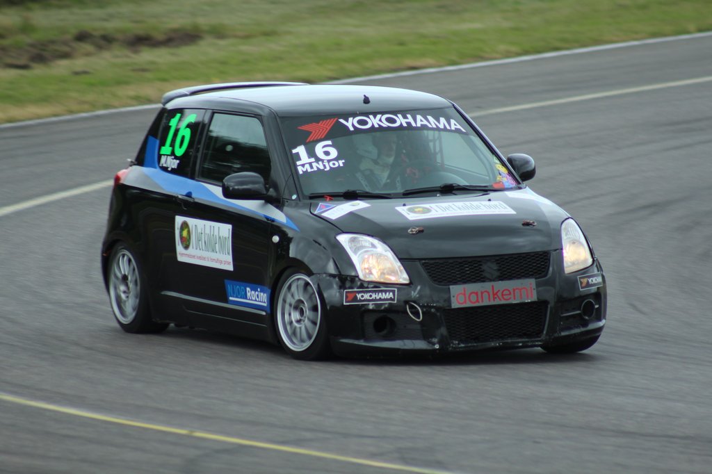 Her drillede vejret nemlig i heat 1, og i opkørslen fra 17. til 11. pladsen i heat 2, gav en del knubs til den sorte Suzuki Swift Sport med nummer 16 i sideruden – så meget at strygejernet måtte frem hjemme på værkstedet.
