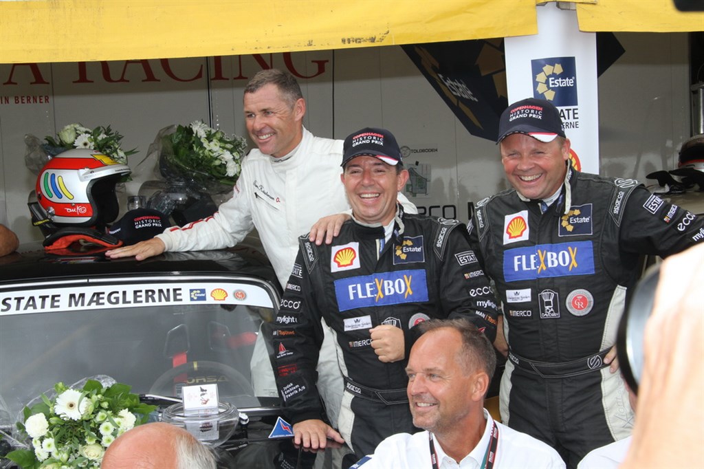 |  |  |  |  |  |  |  |  |  |  |  |  Tom Kristensen og hans team ser ikke overraskende svært glade ud efter sejren. (Foto: Motorsporten.dk) |