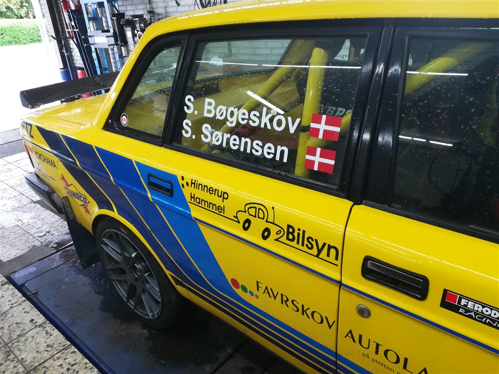 Bilen er klar og stafferinger fra sidst løb forblev intakte. (Foto: Bøgeskov Motorsport)