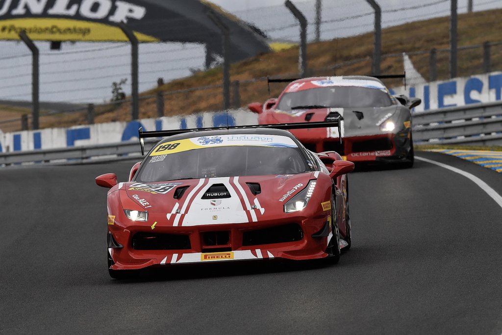 Formula Racing fører fortsat teammesterskabet i Ferrari Challenge Europe efter weekendens afdeling af mærkeserien, der blev afviklet på Le Mans som opvarmning til verdens mest berømte motorløb. Foran 250.000 tilskuere sikrede det store danske Ferrari-team torsdag pole position i to ud af fire klasser, og efter det udfordrende løb, som blev kørt lørdag formiddag, fører Formula Racing nu også to individuelle kørermesterskaber.
