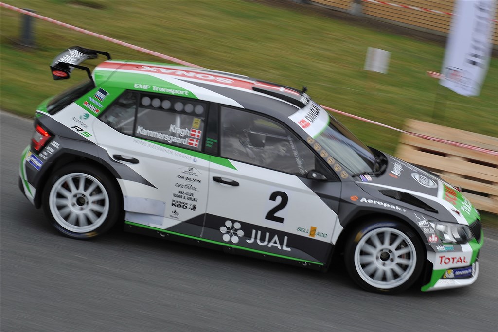 Præcist 30 år efter, at han første gang stod øverst på sejrsskamlen i Fårvangs industrikvarter, kunne Ib Kragh for femte gang i karrieren vinde Birch Tvilum Rallyshow. Sammen med Ditte Kammersgaard var han i sin Skoda Fabia R5 hurtigste kører i såvel de tre indledende heat i den ordinære konkurrence samt i finalen, hvortil kørerne med de 20 bedste heattider havde kvalificeret sig.  Det blev til sejr nummer fem for Ib Kragh i Birch Tvilum Rallyshow. (Foto: Morten Alstrup)