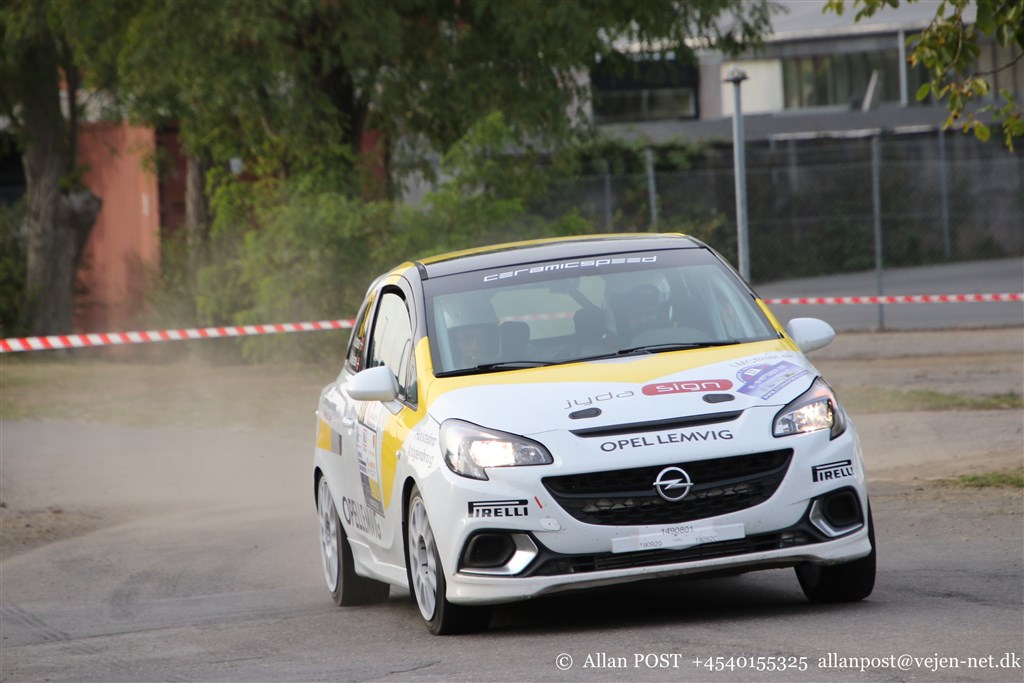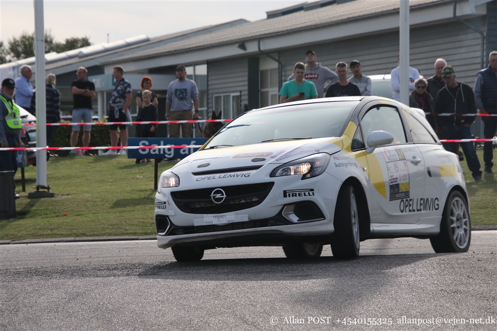 Nykøbing Falster hallen var rallyets centrum med serviceplads lige udenfor, dejligt vejr, og Jan og hans codriver Kaj Mikkelsen/Sporup var klar til at give gas fra første kørte meter i teamets Opel Corsa OPC.