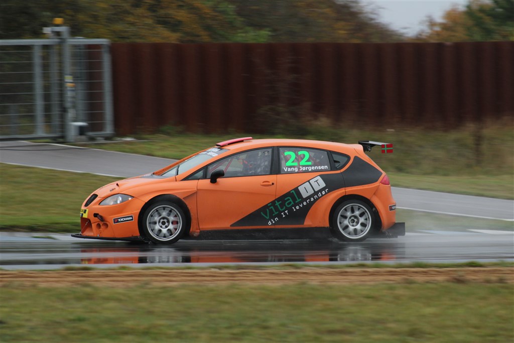 Det var første gang at Lars Christensen skulle køre på regndæk med Seat Leon raceren. Efter træningen og kvalifikationen, fik han efterhånden godt styr på det, og forbedrede omgangstiderne med 10 sekunder fra træningen til løb 1. (Foto: JJ Media)