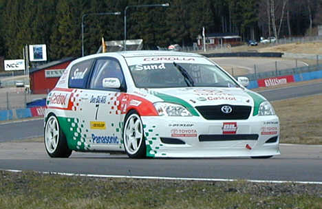 De to Totota Corolla racere, som køres af Henrik Lundgaard og Jacob Sund, i Toyota Castrol Racing teamet er begge ens dekoreret.