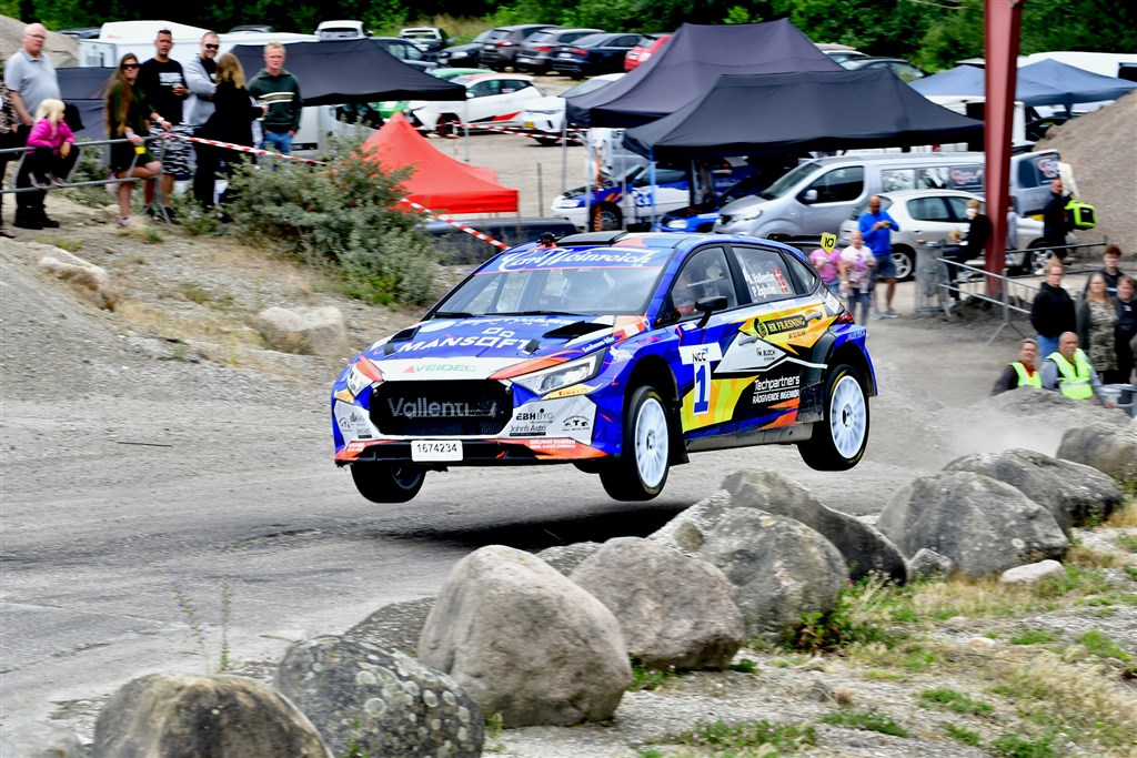 Simon Vallentin fra Holbæk stod også i år på toppen af sejrspodiet efter det sidste af dagens heat i det legendariske rallysprint i Gammelrand ved Kalundborg. I fjor vandt han i en lejet bil og lørdag gentog han sejren i Vallentin Rallysports egen Hyundai i20N Rally2.