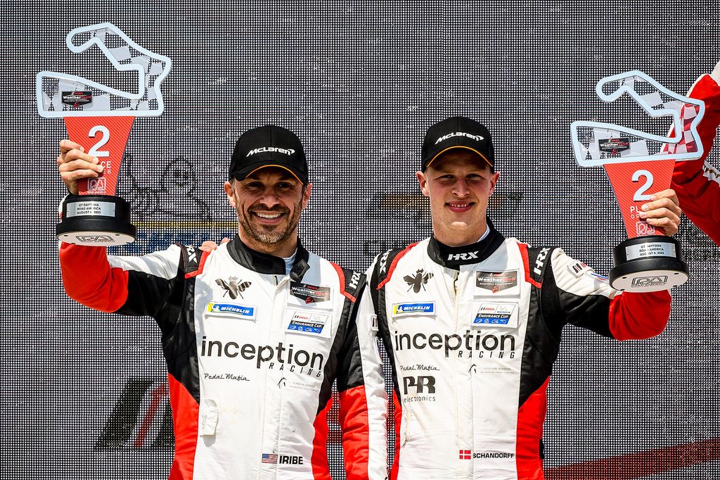 Frederik Schandorff var flyvende i ottende afdeling af IMSA-mesterskabet for GTD-biler, hvor han sammen med Brendan Iribe og Inception Racing sluttede på en andenplads i sin klasse. Den dansk-amerikanske McLaren-duo sluttede blot 2,3 sekunder fra den vindende bil – og med en tredjeplads i det samlede GTD-felt slog Schandorff og Iribe således ovenikøbet de fleste af bilerne i den hurtigere GTD Pro-klasse, hvilket er makkerparrets bedste IMSA-resultat til dato.